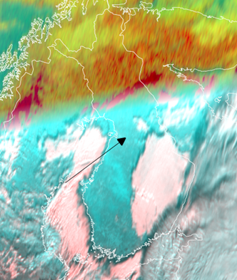 The most limiting challenge in the high latitudes is the lack of sunlight in the wintertime. Data can contain systematic errors, such as incorrect cloud top height readings in the presence of upper-level inversions (see extra material: herve.pdf). A case where lack of sunlight causes incorrect readings can be seen in Figure 32. In the image the SAF product suggests there is no snow on the ground in Northern Lapland, which is not the case at that time as can be seen by looking at the image on the right. The reason for this is that the solar elevation angle during winter months even during daytime is too low for correct data retrieval in northern parts of Fennoscandia. One can also see discontinuities in the “snow over land” interpretation, which may be due to dense forest and no snow cover on the treetops.