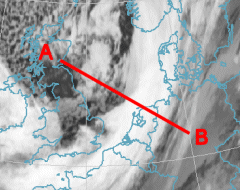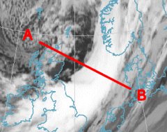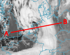 - In the beginning of the development the isentropes show a cold-front-inclined crowding zone in the area of the cloud band. In the region of the comma-like feature the isentropes show potential instability in lower layers.