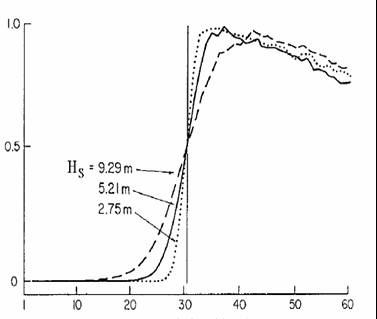 Fig.3. Time variations of the radar wave power after reflection from the sea surface as a function of different SWH values (From Chelton (1988)).